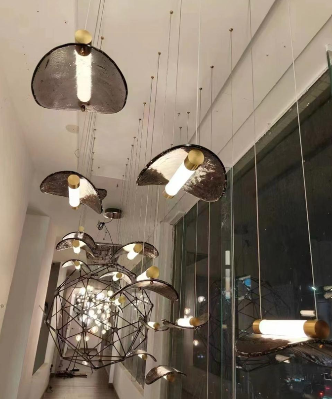 The Aero Leaf Glass LED Pendant Light is a modern artistic pendant designed to bring elegance and movement into luxury interiors. Featuring a unique leaf-inspired smoked glass reflector combined with a glowing LED tube, this pendant creates a floating effect that feels light, modern, and architectural.